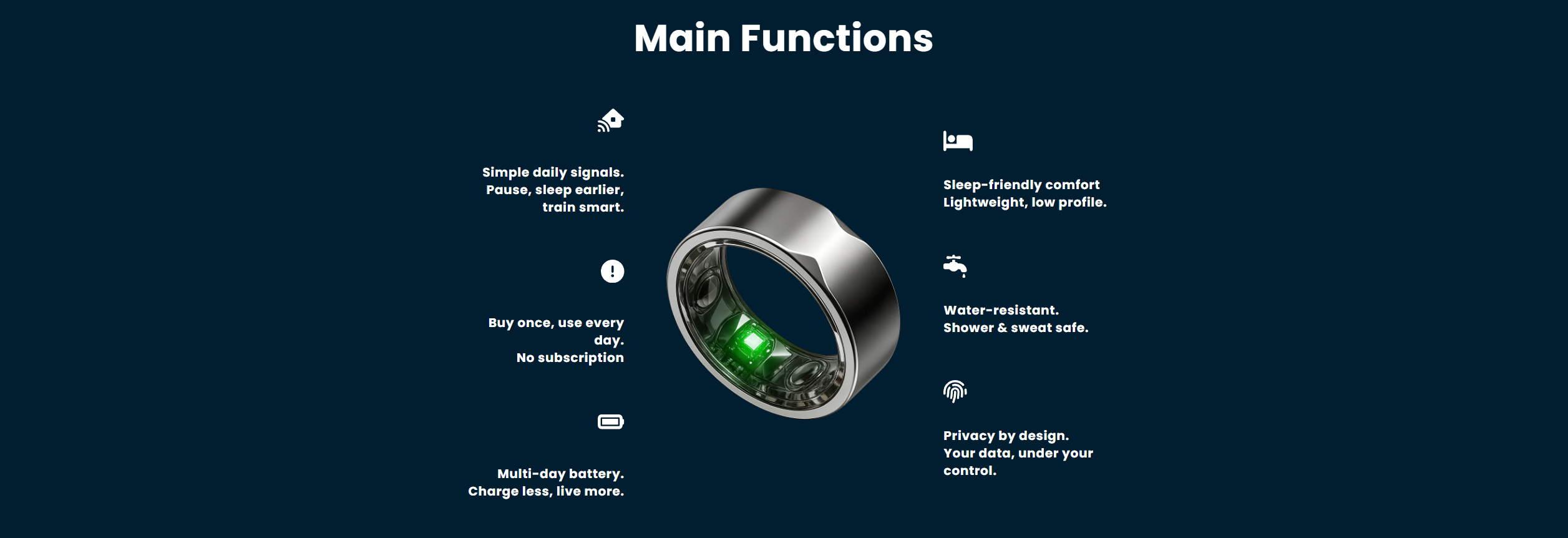 Heart rate, SpO₂, HRV, calories, steps—every vital metric is captured 24/7 and synced to your phone in seconds. One discreet ring replaces bulky wearables, so you stay informed without distraction.